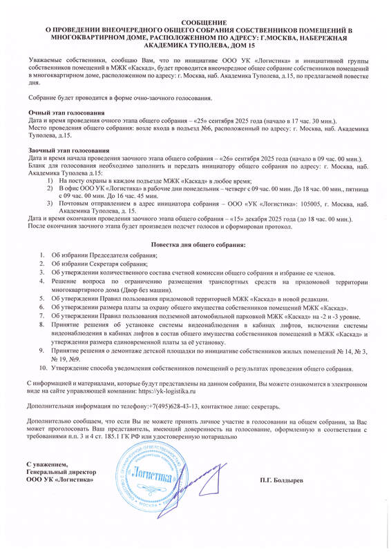 УК «Логистика», будет проводиться внеочередное общее собрание собственников